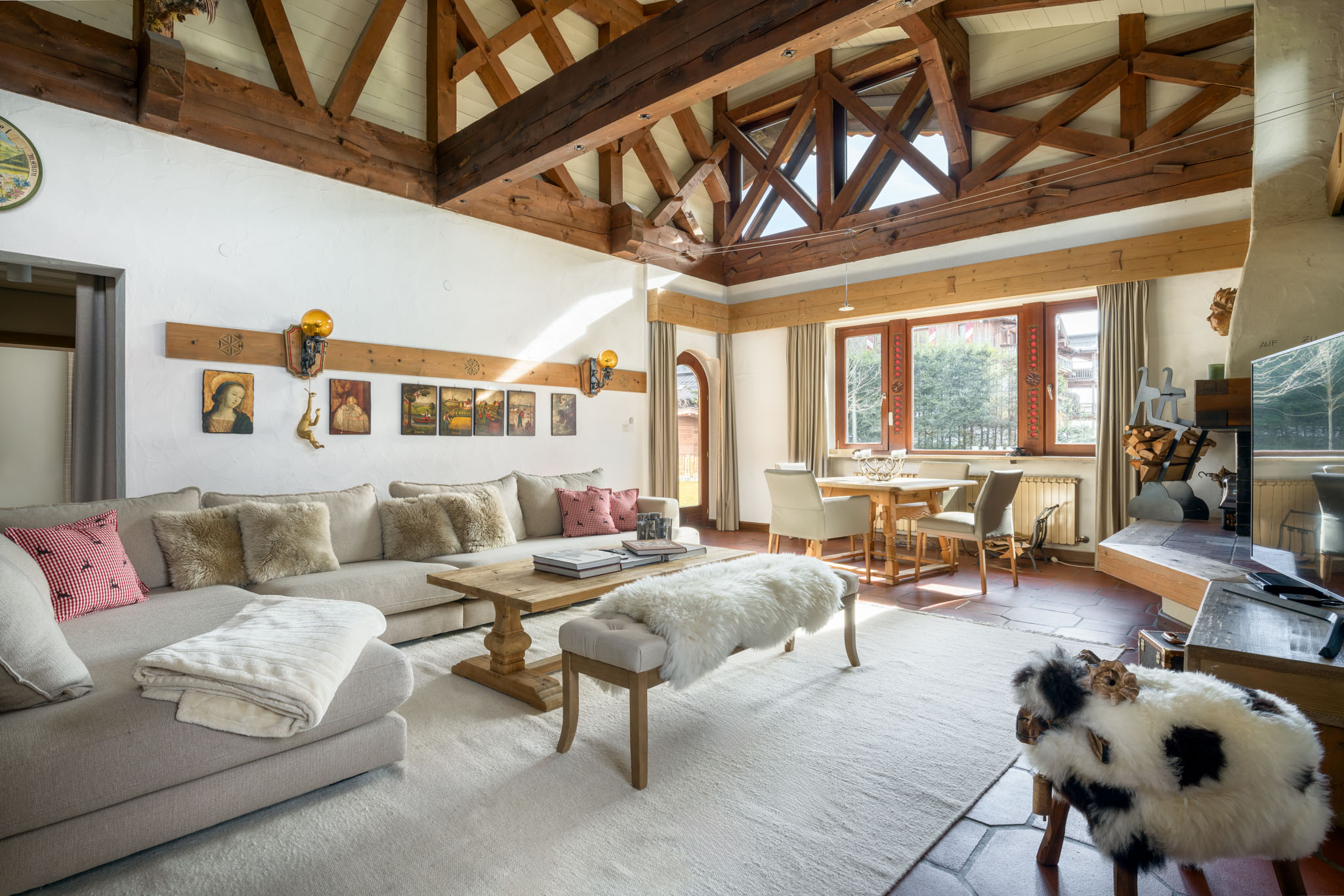 Die Abfahrt mit den Skiern direkt zum Haus ist bei entsprechender Schneelage möglich. Das Ortszentrum ist leicht zu Fuss (10 min) oder mit dem Skibus erreichbar.