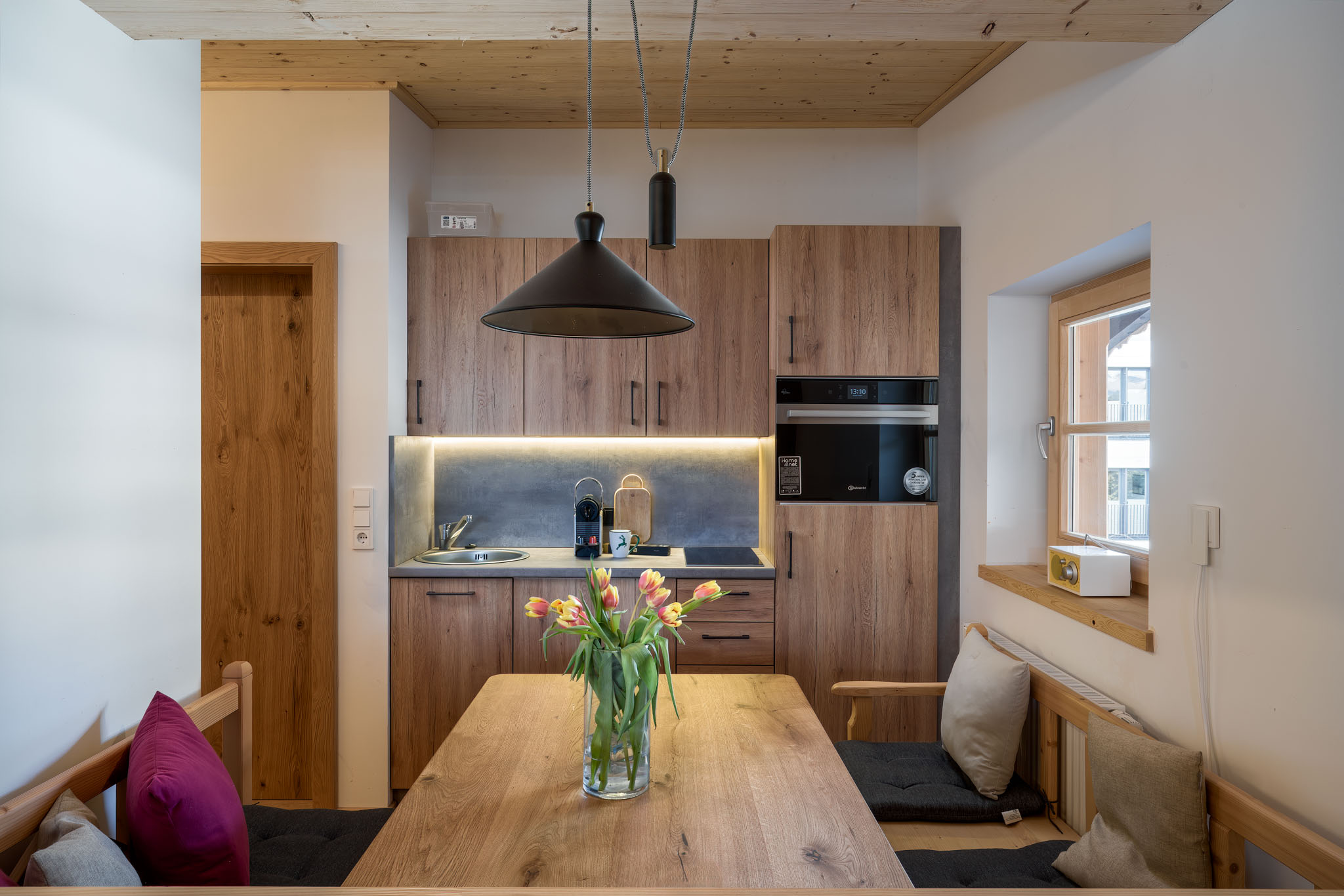 Wir stellen für Euch auch eine Kaffeemaschine mit Bohnen, eine Küchengrundausstattung (Salz/Pfeffer, Öl und Essig) sowie Reinigungsmaterial zur Verfügung